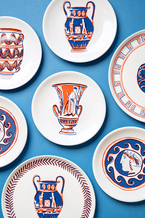 Inspirée par les collections de céramiques grecques, étrusques et romaines, l'artiste sérigraphe Blandine Imberty imagine pour le Louvre la collection Keramos*. A travers son trait vif et spontané, les formes et les décors millénaires naturalistes, géométriques ou figuratifs se parent d'une écriture contemporaine.
